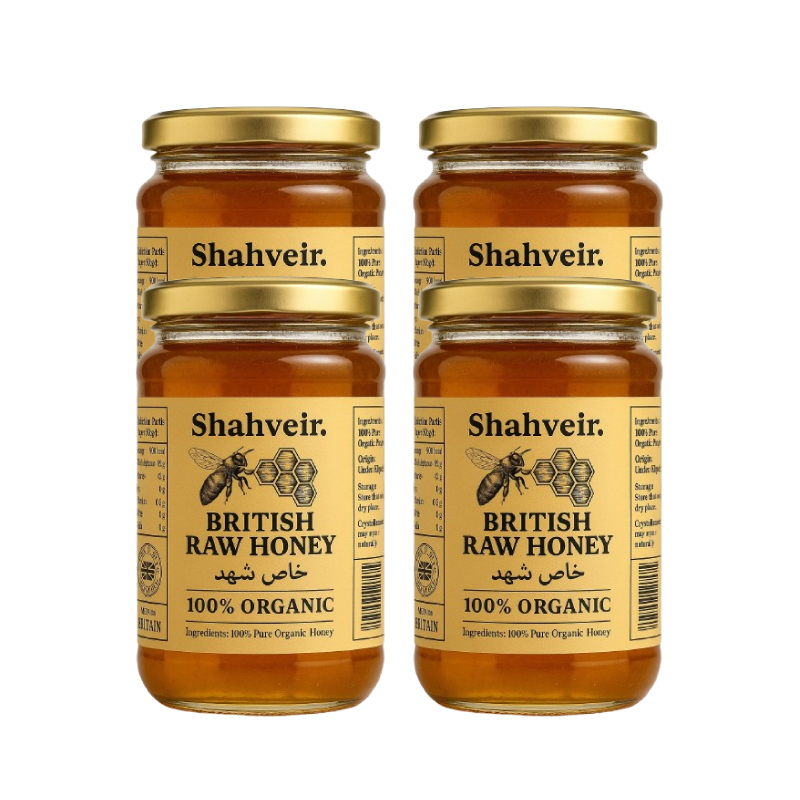 Enjoy an abundant supply of golden goodness with the Shahveir Beehive LTD Raw British Honey 4 Medium Pack (454g Jars) — a premium collection of 100% pure raw honey, lovingly harvested from wildflower meadows across the UK.