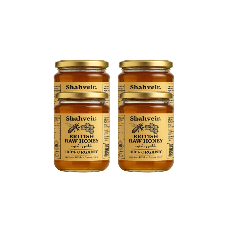 Share the sweetness of nature with the Shahveir Beehive LTD Raw British Honey 4 Small Pack (227g Jars) — each jar filled with 100% pure raw British honey, harvested from local wildflower meadows across the UK.